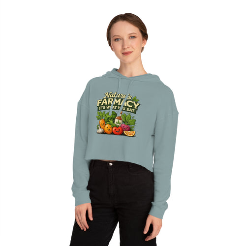 Cropped Hoodie – "Nature's Farmacy" Cute Veggie Graphic, It's What You Eat